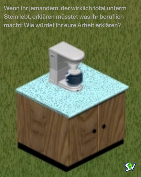 Und wenn ihr jemandem, der wirklich total unterm Stein lebt, erklären müsstet was ihr beruflich macht: Wie würdet ihr eure Arbeit erklären?