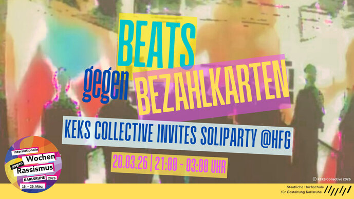 Das KEKS Collective lädt am Freitagabend, 20.03.2026, im Rahmen der Internationalen Wochen gegen Rassismus zum solidarischen Tanzen und Spenden in der Staatlichen Hochschule für Gestaltung Karlsruhe ein. Gemeinsam mit der Initiative Nein zur Bezahlkarte Karlsruhe setzt die Veranstaltung ein Zeichen gegen Rassismus und strukturelle Ausgrenzung.