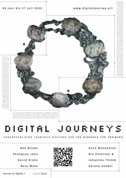 Digital Journeys brings together the outcomes of a semester - long seminar with media art students from the HfG Karlsruhe under the guidance of, among others, Prof. Anne Duk Hee Jordan, who approached the city of Freiburg as both site and subject of research. Engaging with the themes of Biennale für Freiburg 3, the students navigated the city not just as observers, but as speculative worldbuilders, rethinking what tourism can reveal, obscure, or invent.
