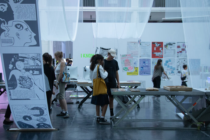The large annual exhibition will showcase current projects from all degree programs and subject groups - Communication Design, Product Design, Media Art, Exhibition Design & Scenography and Art Research & Media Philosophy. In the atriums of the HfG and at other presentation locations throughout the university, visitors can gain an insight into around 100 student works. These include performances, installations, videos, objects and texts. An accompanying program of events with public tours, film screenings, talks and other formats, co-organized by the university's General Student Committee, offers opportunities for exchange with students and teachers over four days.