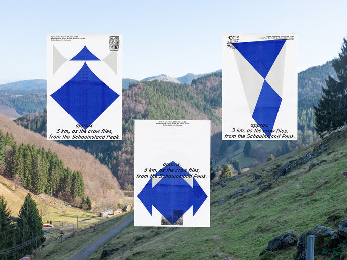 "approx., 3km, as the crow flies, from the Schauinsland Peak." ist ein Zitat aus der Wegbeschreibung zum Zentralen Bergungsort der Bundesrepublik Deutschland (ZBO) aus dem Internationalen Register der Kulturgüter unter besonderem Schutz der UNESCO. Die Wegbeschreibung führt zum Barbarastollen, einem ehemaligen Erzbergbaustollen im Hintertal, nahe der Gemeinde Oberried im Schwarzwald. Die Ausstellung versammelt Material in verschiedenen Formen, die den Barbarastollen und damit verbundene Aspekte erforschen. Anhand von Artefakten, die bei mehreren Besuchen im und um den Stollen herum gefunden wurden – Fotos, Geschichten, Zeitungsartikeln, E-Mails, Archivdokumenten, Ton- und Videoaufnahmen –, untersucht die Ausstellung, wie das Archiv im Stollen funktioniert und warum es noch existiert.