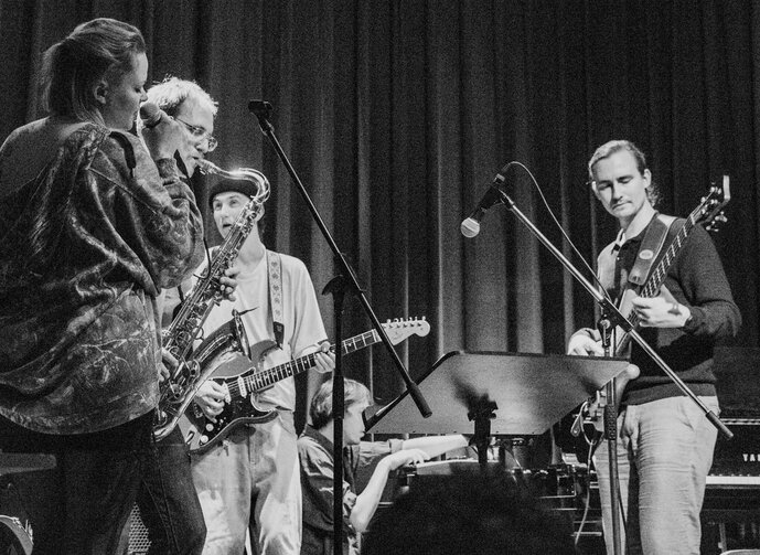 Erlebt „Jazz im Blauen Salon“, die allseits beliebte Reihe im stilvoll-samtenen Ambiente unseres Kinosaals, der unter gewohnt leidenschaftlicher Leitung von Jason und Philip von lebendigen Jazzklängen erfüllt wird. Nach den letzten erfolgreich überbesuchten Abenden freuen wir uns, diese Reihe im Wintersemester 2024 fortsetzen zu können und uns auf ein Neues den meisterhaften Darbietungen talentierter Musiker:innen hinzugeben. Freut euch auf eine Session, die sogar Miles Davis und Co. begeistert hätten - besser noch: Gäste aus den fernsten Gefilden wie Rastatt und Pforzheim herbeilocken! Bei unserem Event erwarten euch neben dem obligatorischen Gläschen Wein Jazz-Standards, spontane Improvisationen und mitreißende Jam-Sessions, die von Funk über Hip-Hop bis Neo-Soul reichen. Ob Amateur:in oder Profi, ob Ukulele oder Triangel – die Open Stage steht allen bereit!